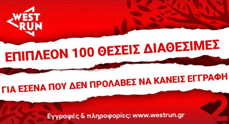 Η Οργανωτική Επιτροπή του 2ου West Run, εξασφάλισε επιπλέον 100 θέσεις για τα 20χλμ και τα 5χλμ. και επιπλέον 5 θέσεις για την σκυταλοδρομία 20χλμ (2 Χ10χλμ)(Άνδρας – Άνδρας, Άνδρας – Γυναίκα, Γυναίκα – Γυναίκα). Οι επιπλέον θέσεις, θα διατίθενται κατά προτεραιότητα, μέχρι εξαντλήσεως, από την ιστοσελίδα της διοργάνωσης και μέσα από…